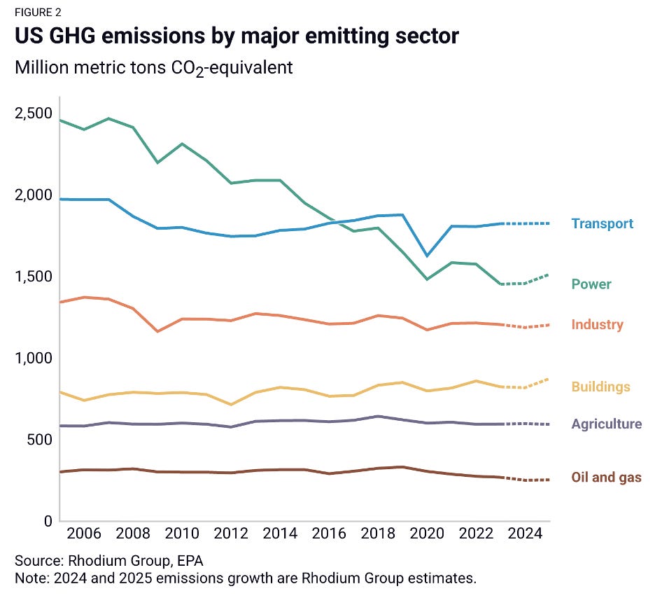 Every year, the Rhodium Group does a preliminary estimate of greenhouse gas emissions for the U.S. These numbers and facts have accurately represented where we’re at for over a decade. The 2025 numbers maintain that quality and carry sobering implications.