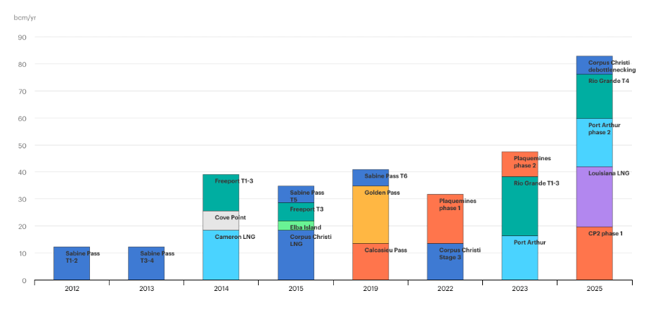 Demand growth drove increase approval of LNG exports terminals. In the U.S. case, it’s worth noting that export terminal approval is independent of politics. While the current Trump administration has accelerated approvals, many happened during Obama, Trump 1, and Biden, and each administration saw growth in final investment decisions (FID).